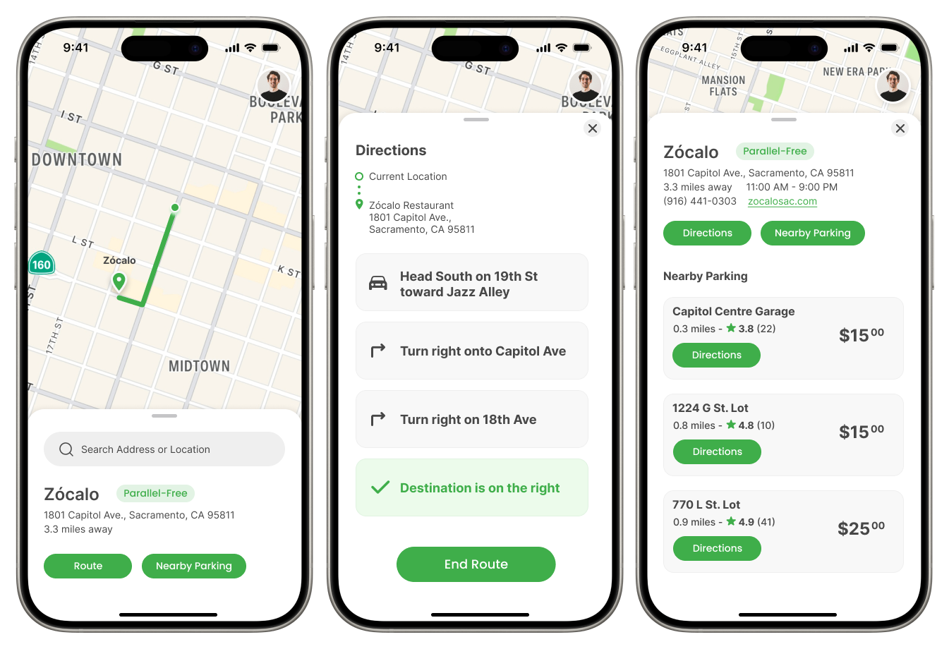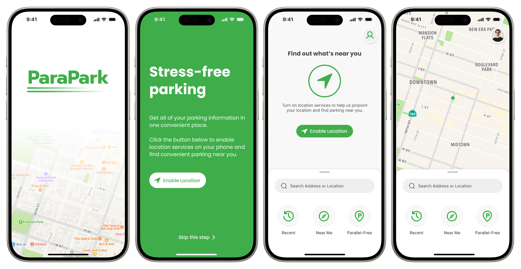 ParaPark is a map and parking app that allows users to quickly scope out the parallel parking situation for their desired location while also exploring alternative parking options nearby.