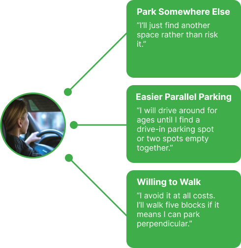 Thankfully, there are lots of discussions happening online about parallelophobia and how drivers in the US feel about parallel parking, as a whole. I collected quotes from drivers for my own research and used that to pinpoint the main fears that drivers in the US have with parallel parking: